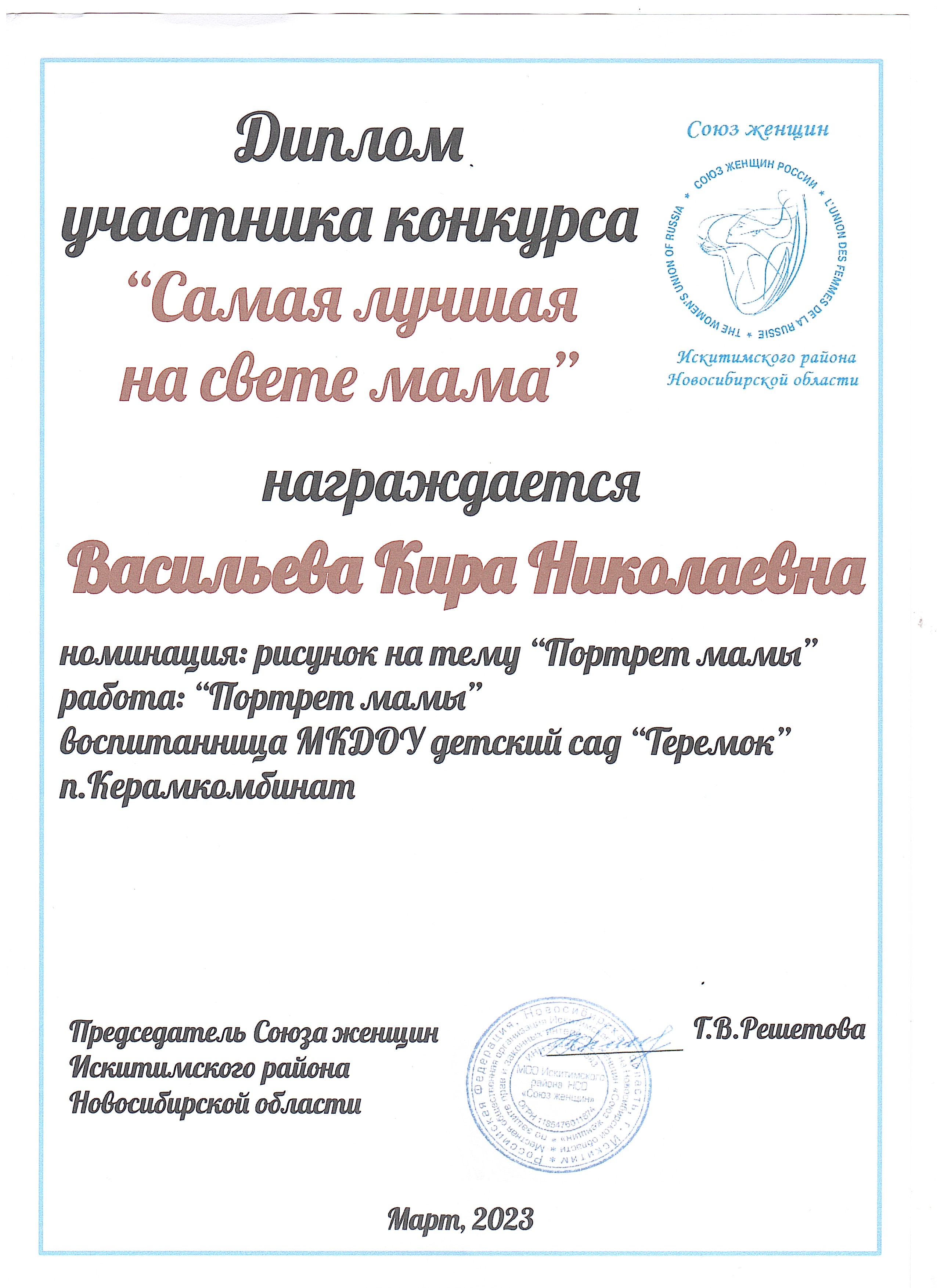 конкурс "Самая лучшая на свете мама", (учредитель : Союз женщин Искитимского района НСО)
