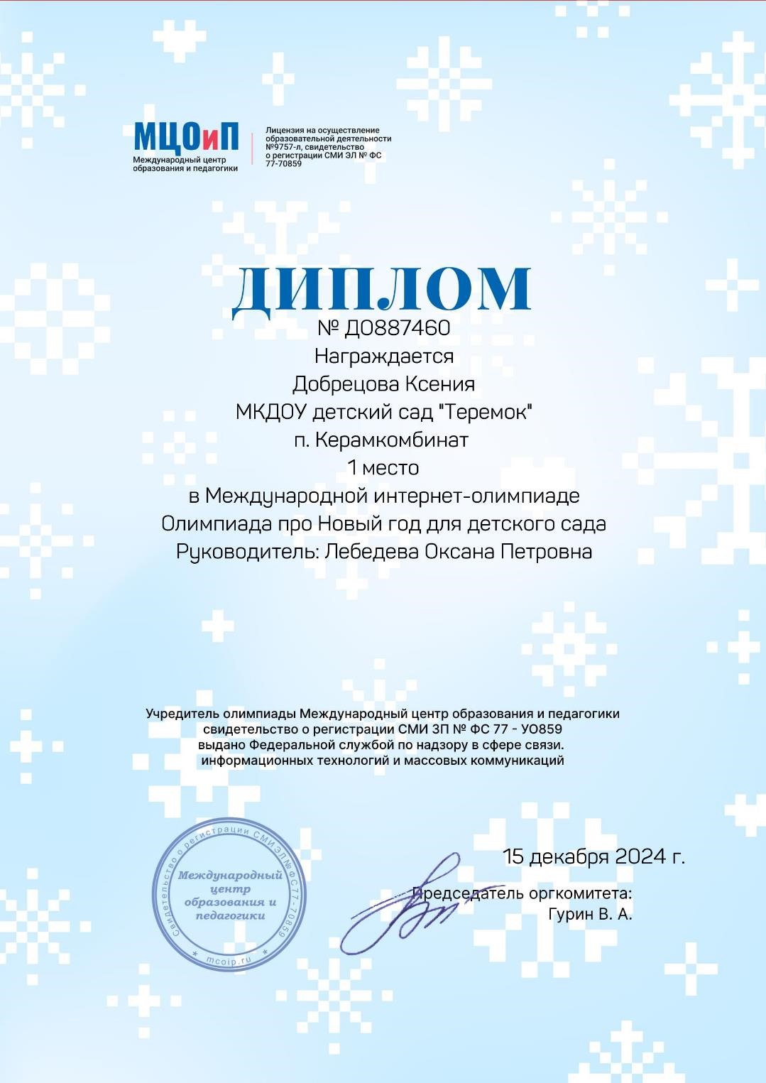 Лебедева Оксана Петровна