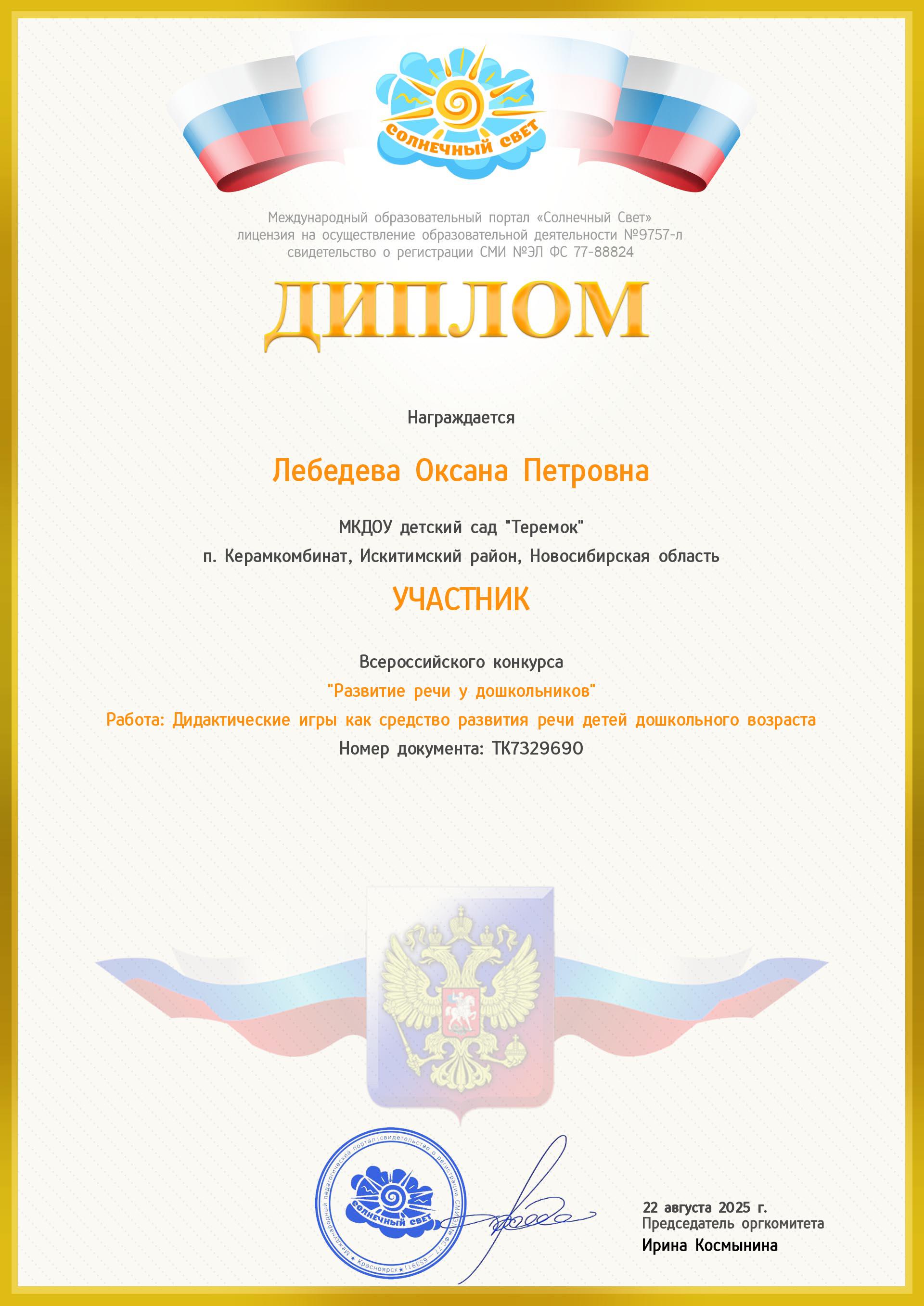 Лебедева Оксана Петровна