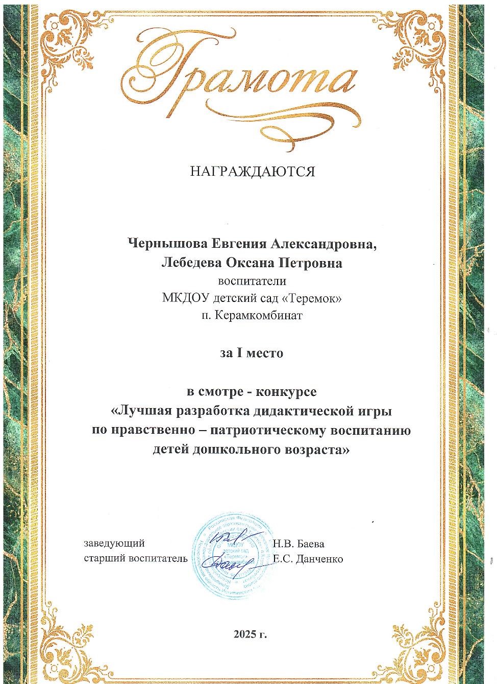 смотр-конкурс "Лучшая разработка дидактической игры по нравственно-патриотическому воспитанию детей дошкольного возраста"