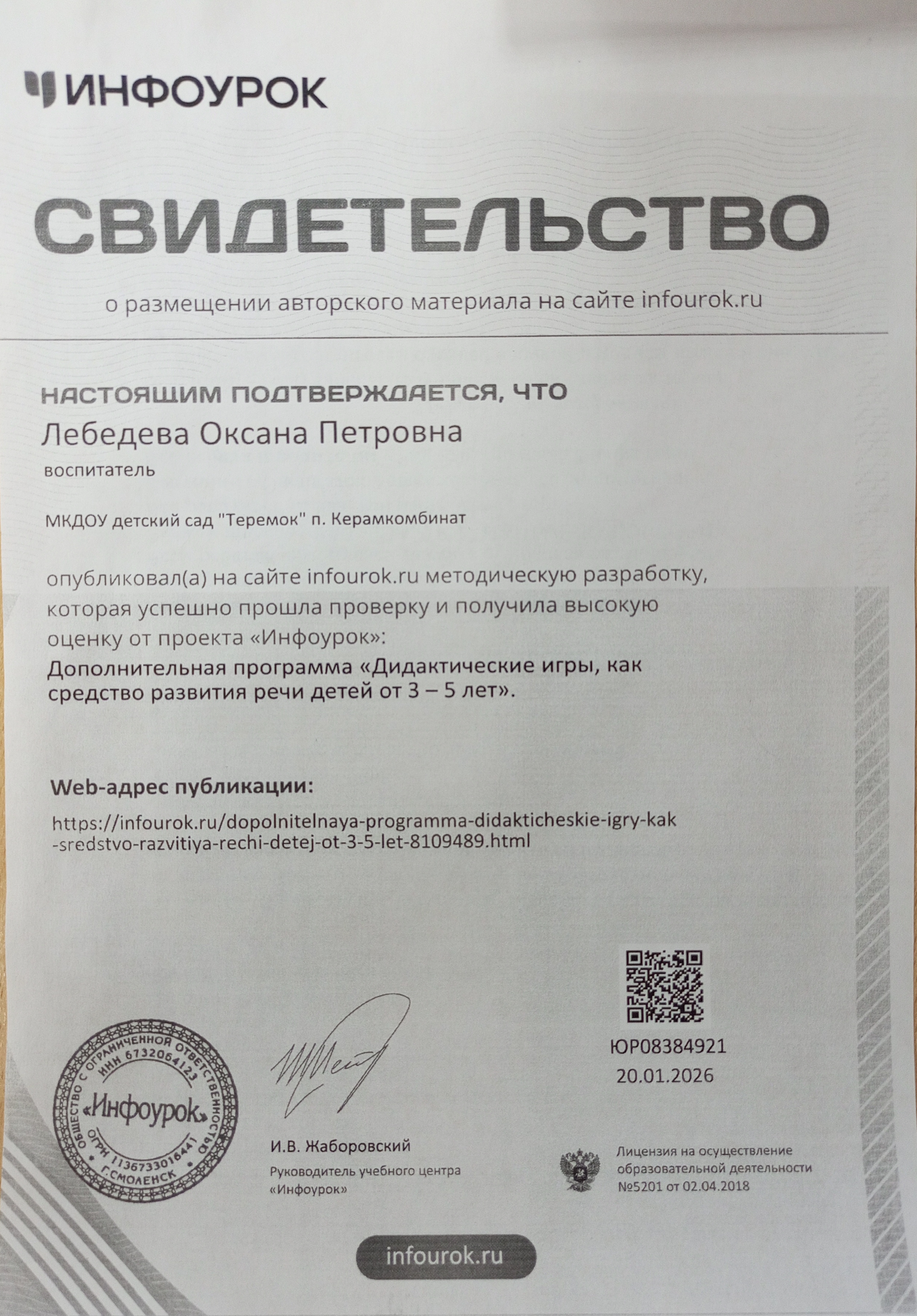 Дополнительная программа «Дидактические игры, как средство развития речи детей от 3 – 5 лет».