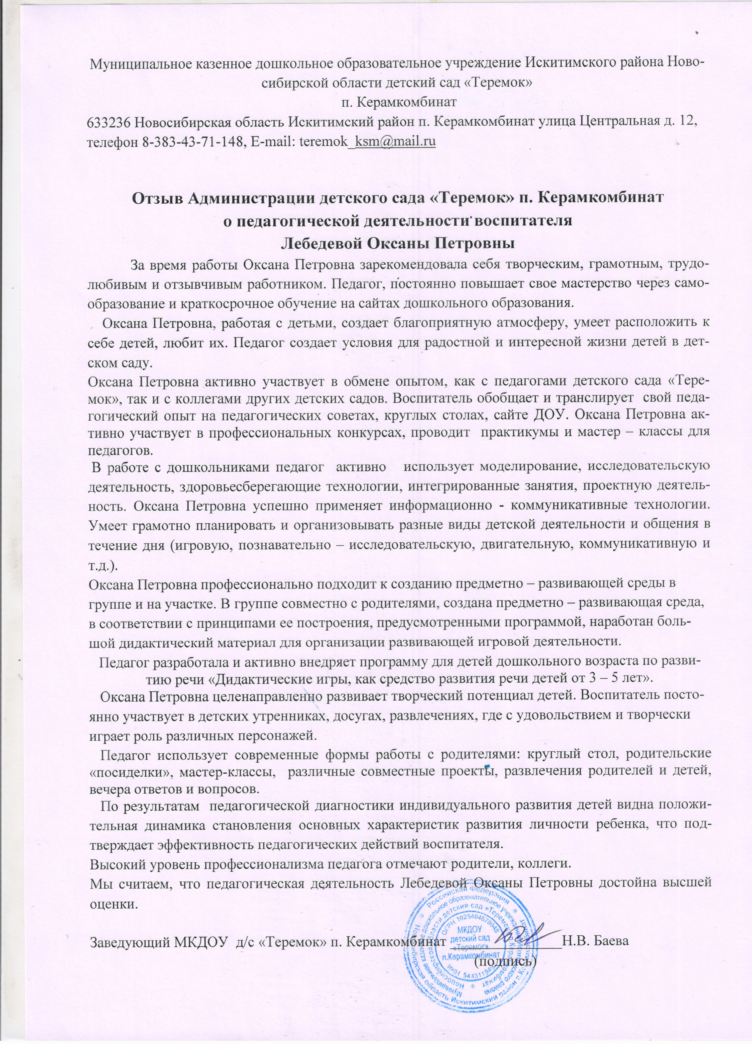 Лебедева Оксана Петровна